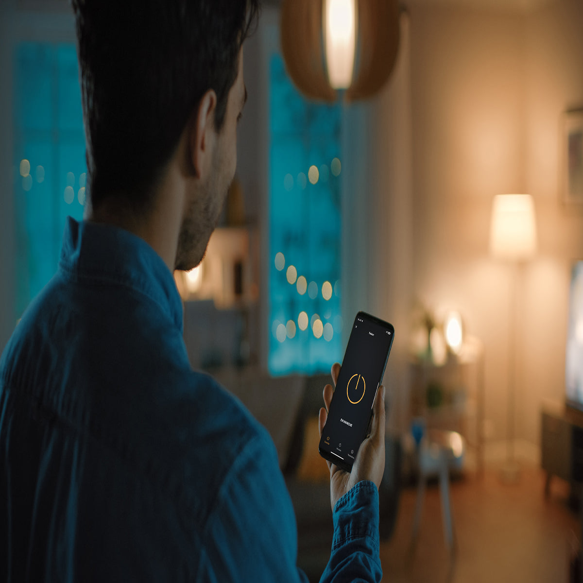 Vous pouvez piloter vos luminaires avec un interrupteur sans fil, une télécommande, votre smartphone ou encore par la voix grâce à la compatibilité avec Amazon Alexa et Google Home.