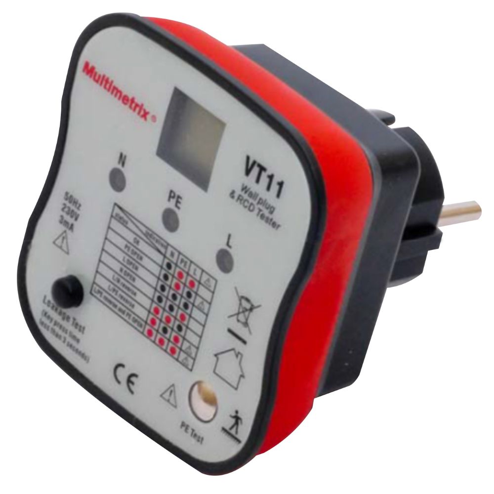 Caractéristiques du testeur de prise 2 pôles plus terre avec différentiel - Multimetrix :