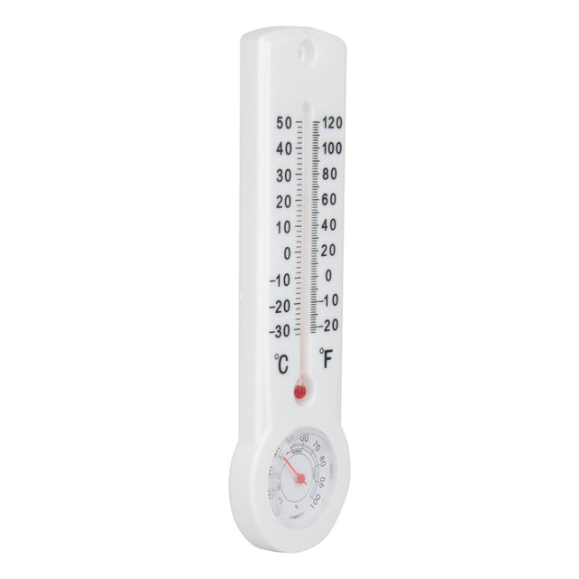 Il dispose d'un cadran de 5 cm de diamètre pour une lecture facile, et son trou d'accroche permet une installation simple en intérieur ou en extérieur. Fabriqué en plastique, il est durable et pratique, avec des dimensions de 22 x 7 cm.