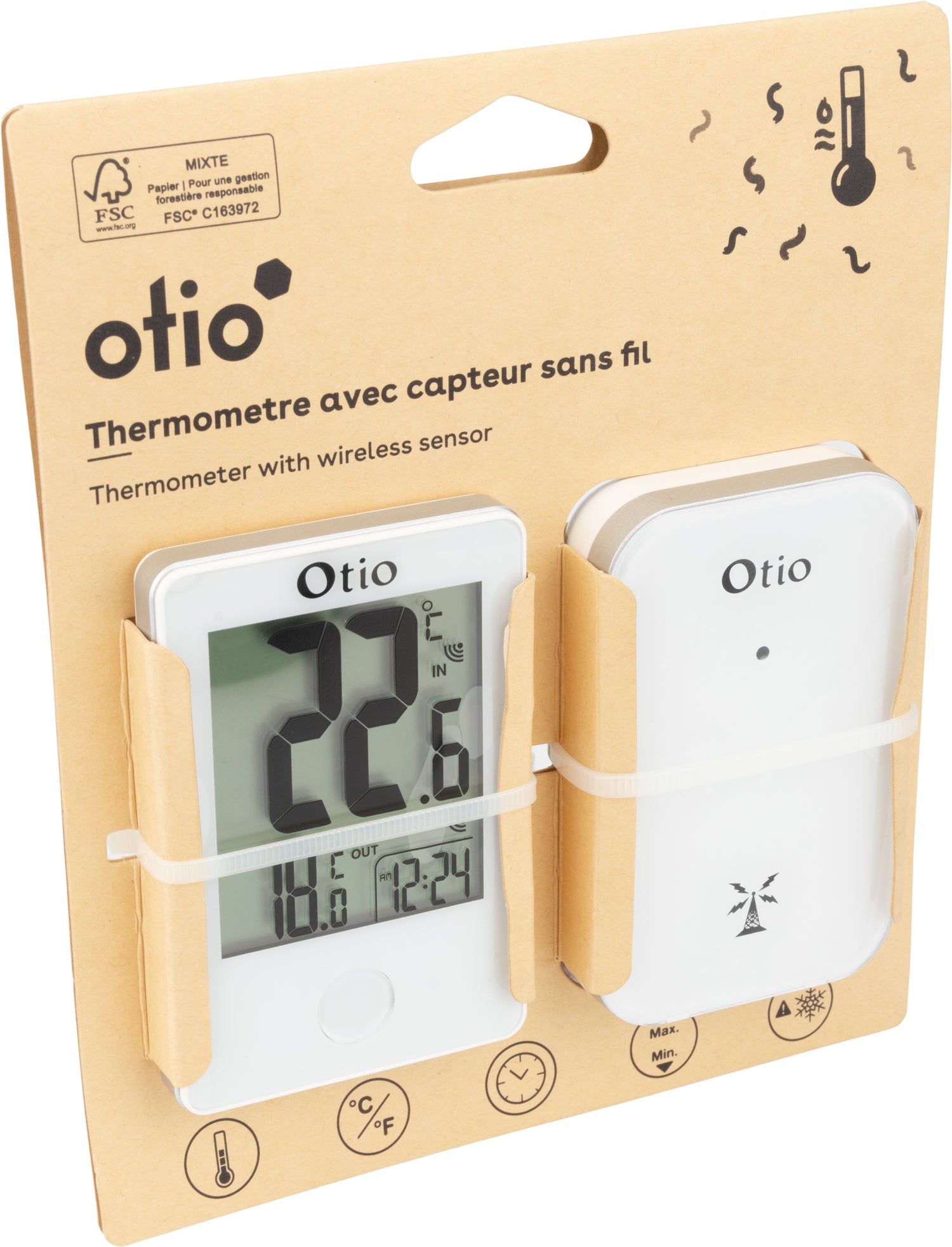 Caractéristiques du thermomètre extérieur intérieur sans fil Otio :